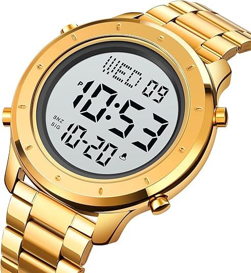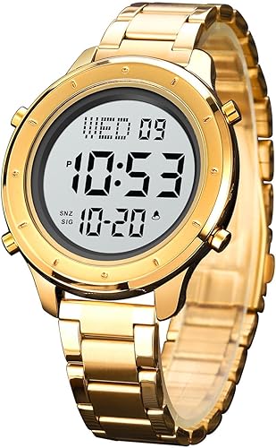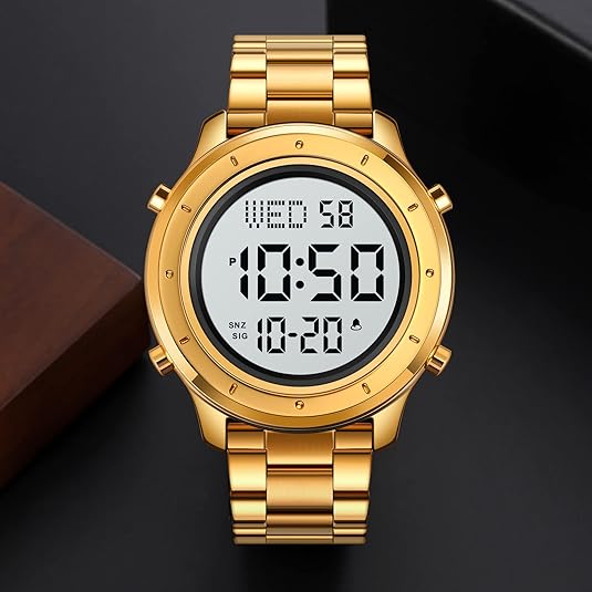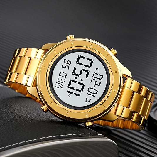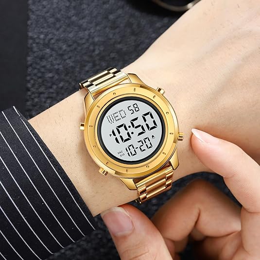 - 【Nice Large Digits】This stainless steel digital watch is very masculine and keeps excellent time. It is very easy to see the numbers indoors and specially outdoors, even at night, light illuminates well. VERY LARGE digital face and big numbers readout is convenient for reading.