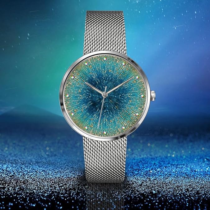 - Easy-to-Read: The art dial with colorful stones index ensures that you can quickly and effortlessly read the time at a glance, making this watch both fashionable and functional.